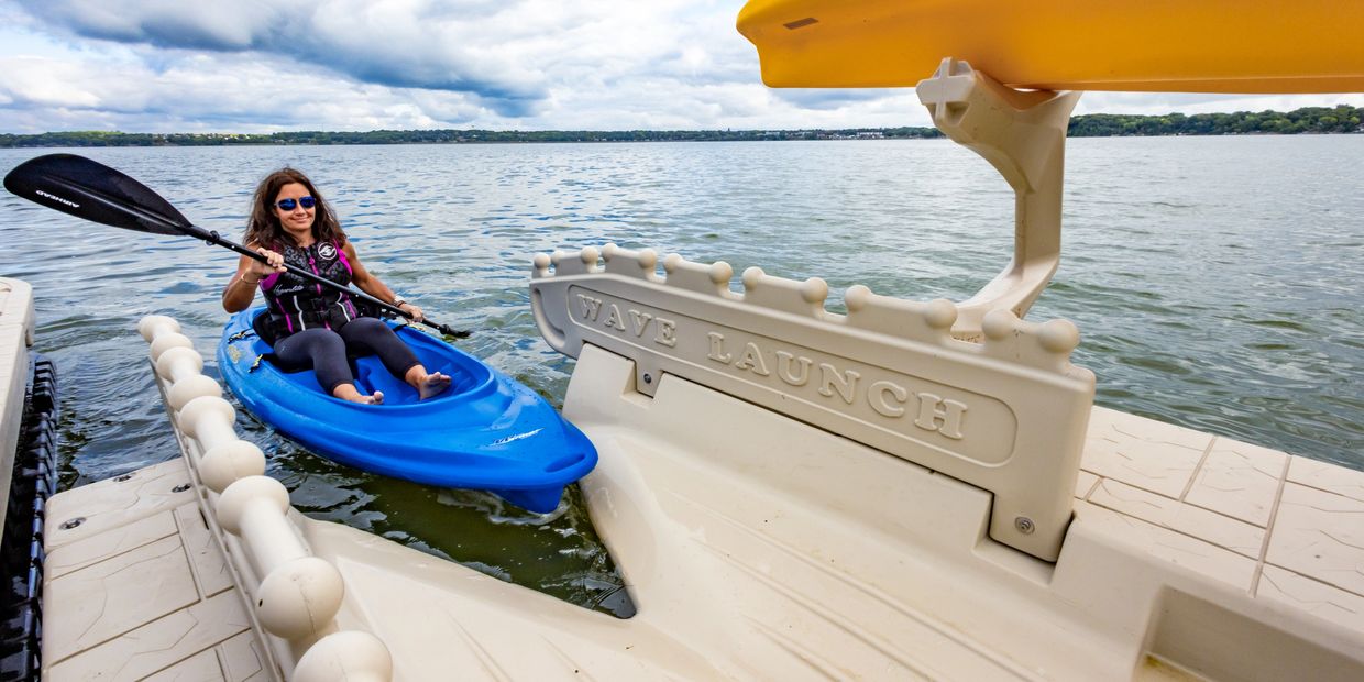 Wave Armor and AccuDock Kayak Docks and Paddle Sport Docks are designed and built for all water sport activities. The resulting low freeboard of the kayak docks makes for a smooth transition on and off the water regardless of skill set. Wave Armor and AccuDock have a full line of floating dock configurations designed specifically for paddle sports. Each Wave Armor Kayak Dock and AccuDock provides a safe stable platform that is close to the water’s surface, making the launch and recovery of your kayak/paddleboard easy. Once we get a look at your location where you want to put your kayak dock or canoe launch, we will make a recommendation of what product is the best solution for you.